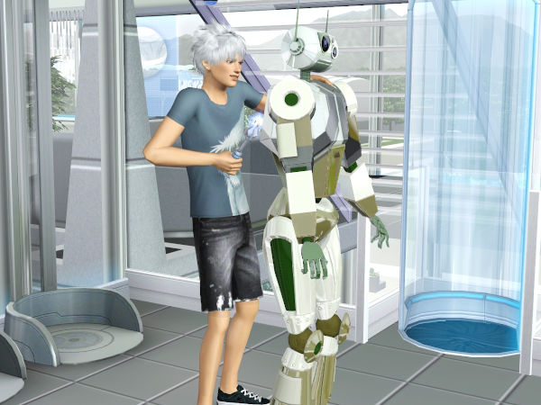 未来に到着するやいなや、彼が向かった先は「ボット工房」。未来では、Plumbotという自律型ロボットが人々に混じって暮らしています。