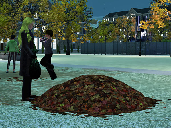 寮に戻ると、敷地内に大きな落ち葉の山が….