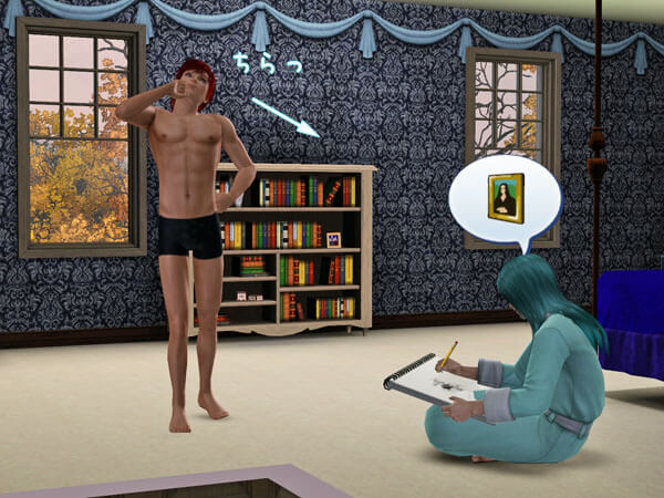 クラ様とリュミ様のお部屋で、オスカー様をモデルにリュミ様がスケッチしていました。