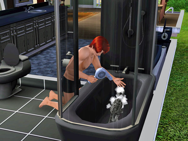 皆様には優雅なセレブ生活をエンジョイしてもらおうと思っていたら、オスカー様がバスルームでネコを洗っていた。