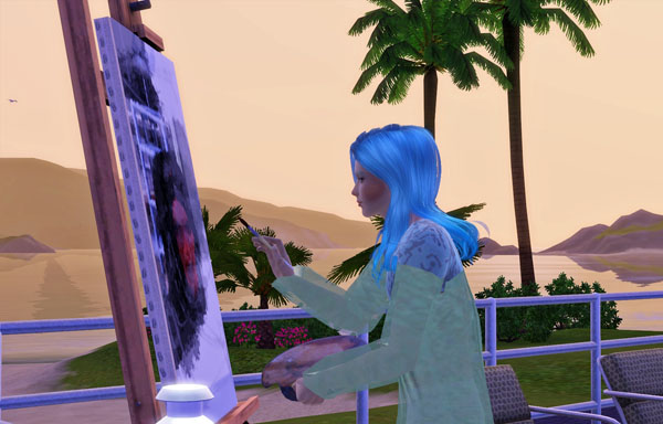 夕暮れのテラスで絵画に没頭するリュミ様。描いているのはクラ様の肖像ですね~。
